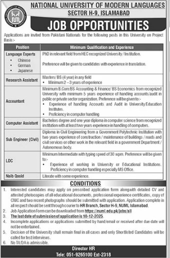 Vacancies Details Of National University of Modern Languages Jobs 2025